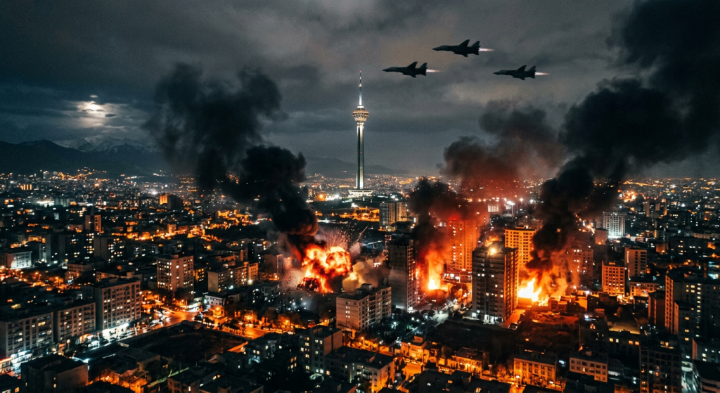 ভোর সাতটা বাজেনি তখনও। UTC সময় ০৭:০০। মাত্র ১২ ঘণ্টায় প্রায় ৯০০টি হামলা — তেহরান, ইসফাহান, কোম, কারাজ, কেরমানশাহ। ইসরায়েলের ২০০টি যুদ্ধবিমান একাই ৫০০ লক্ষ্যবস্তুতে আঘাত করেছে বলে IDF নিশ্চিত করেছে।