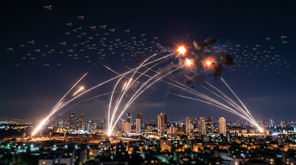 তার চেয়েও ভয়ংকর হলো “Mothership” কৌশল। একটা বড় ড্রোন থেকে একসাথে অনেক ছোট ছোট ড্রোন মুক্ত করা হয় — রাতের আকাশে। রাডারে সেটা দেখায় একটা বিশাল মেঘের মতো, কিন্তু ভেতরে প্রতিটি আলাদা লক্ষ্যে ধেয়ে যাচ্ছে। আয়রন ডোমের অপারেটরদের একই মুহূর্তে শত শত ব্লিপ প্রসেস করতে হয়। এটা মানবিক সক্ষমতার বাইরে।