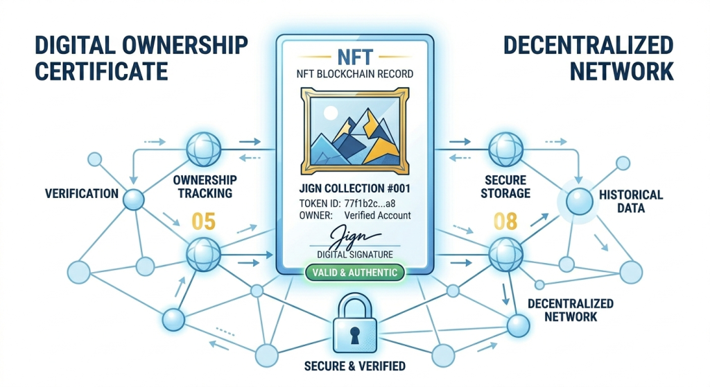 NFT বা Non-Fungible Token — নামটা একটু ভারী, কিন্তু ধারণাটা এক লাইনে বলা যায়: এটা একটা ডিজিটাল সনদ, Blockchain-এ লেখা, যেটা বলে — “এই নির্দিষ্ট সম্পদের আসল মালিক এই মুহূর্তে আপনি।”